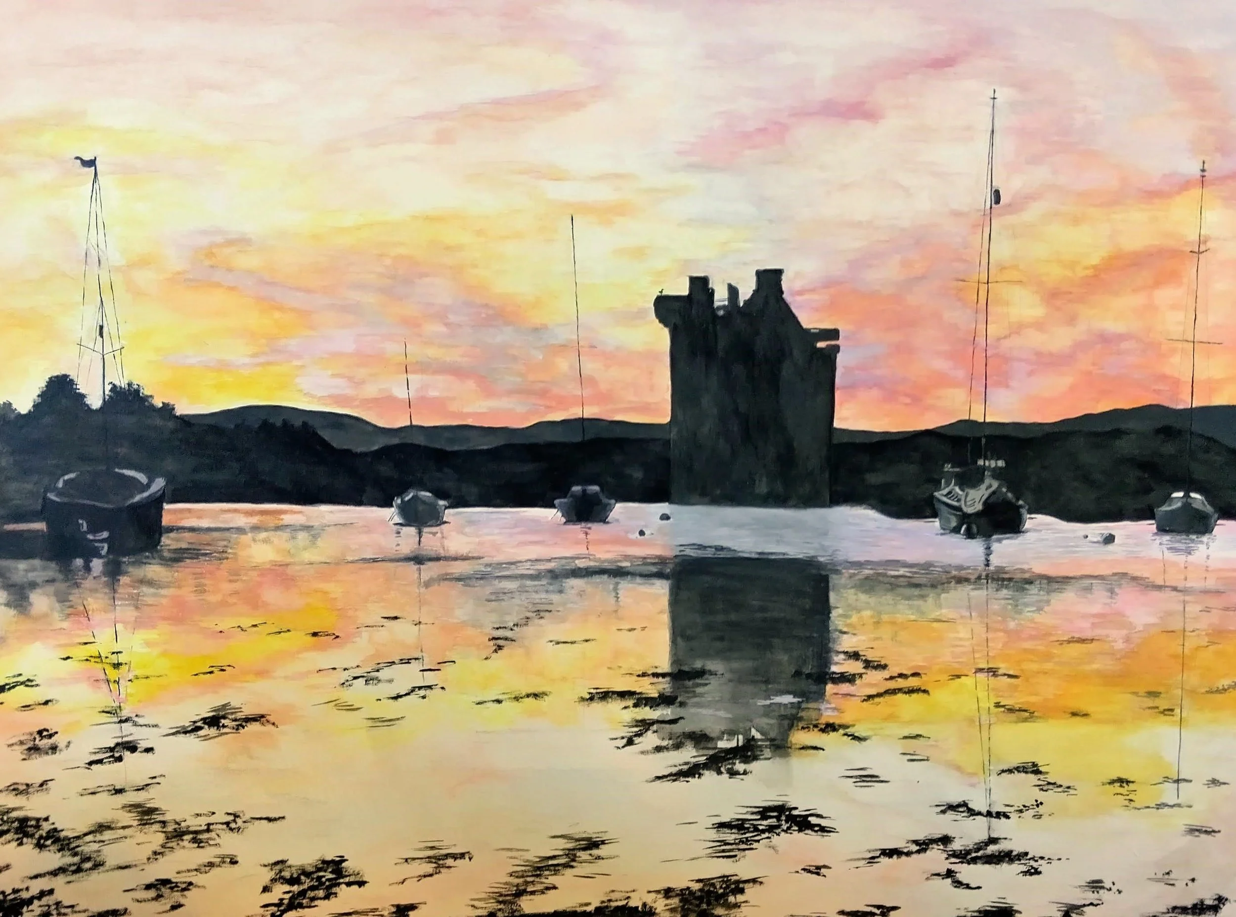 I specialise in paintings of Galloway, where the local landscape and big skies are a permanent source of inspiration. We are also fortunate enough to live close to the coast, where the sea provides ever-changing possibilities for artwork.