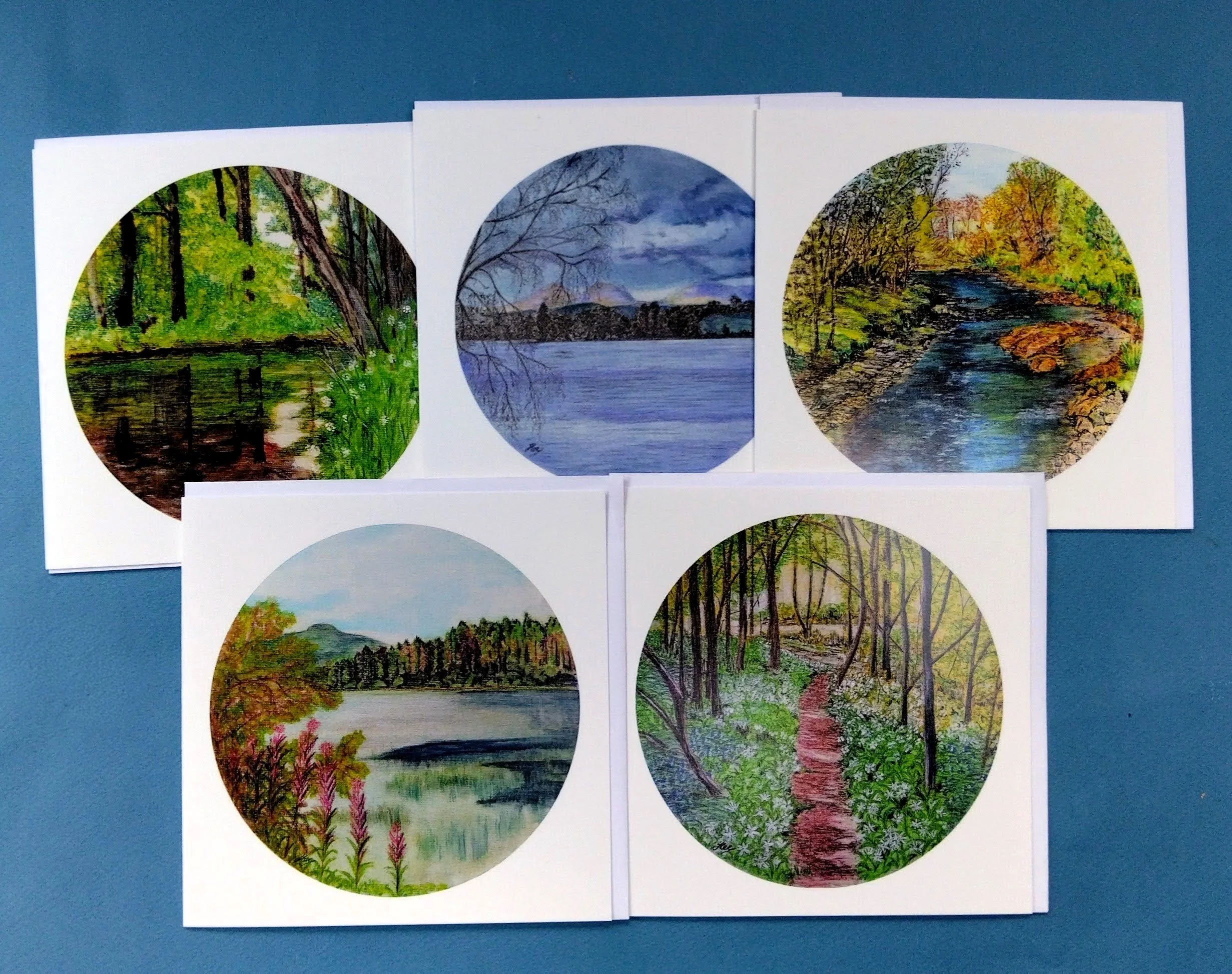 I have three different packs of mixed cards available for sale on the website. Two are shown below as a taster! These are all Galloway based paintings and the card sets come in a variety of shapes and sizes: please have a look.